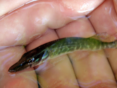 Went rock climbing last week and saw these minnows in a little stream. The Minnesota river had flooded and there was a new stream across our path. After one of my friends caught one we realized that they were not standard minnows, but probably northern pike - very cool.